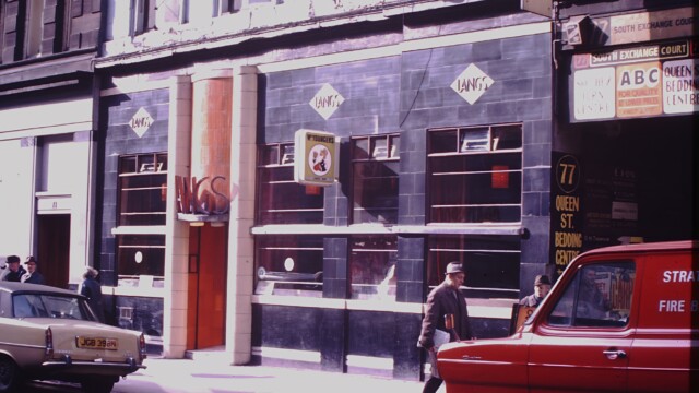 The premises has been a licensed restaurant here since 1845 known as Lang’s. William Lang was born around 1820 in Balloch and was taught the trade of block cutting, he then worked as a shopmate of John Pender a telegraphic celebrity in his day. In 1875 William Lang opened his first shop at 73 Queen Street and traded as a Confectioner, Tea and Wine Merchant. Hundreds of various sandwiches were at the customers disposal, frizzled bacon, lobster, salmon, grouse, blackcock, herring, partridge, pheasant and shrimp were just a few. Oysters taken from the shell and placed with their liquor, in delicate little glass vases with a silver spoon was also a favourite at Lang’s as well as coffee’s tea’s beer, porter and spirit’s of every kind.